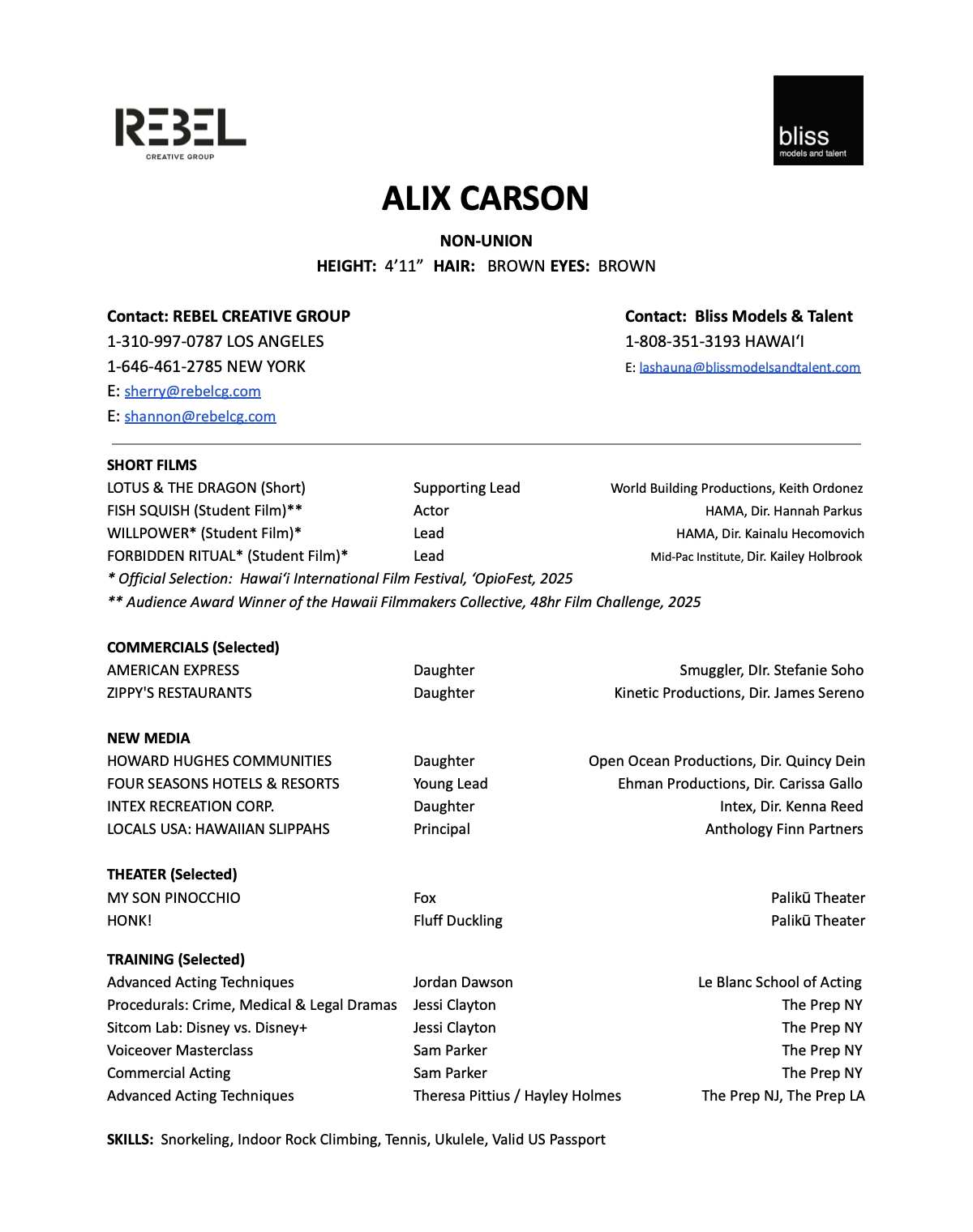 RESUME Download headshot + resume using the buttons below. You can also find Alix on: Actors Access IMDB Download Resume Download Headshot